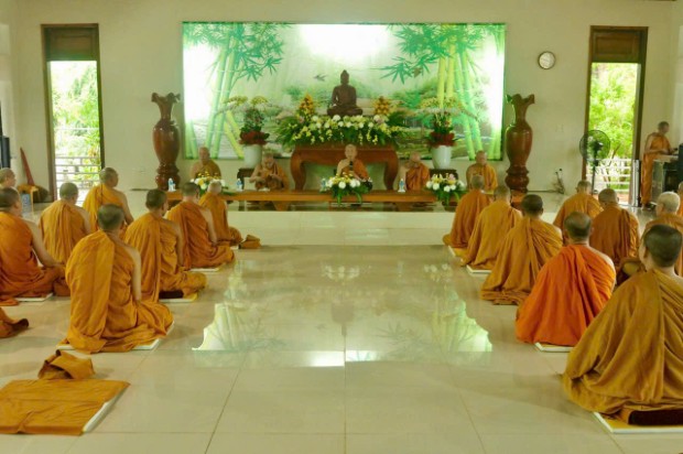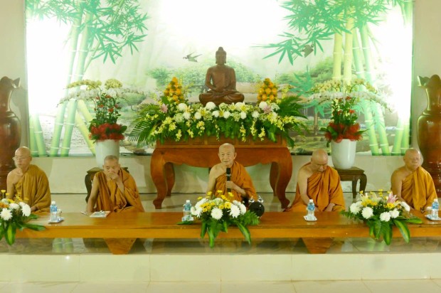 Cuối thời pháp, Trưởng lão Hòa thượng nhắc lại lời dạy của Đức Phật về chuyển hóa nghiệp, khẳng định: “Người không tu thì như chén nước, nắm muối làm mặn ngay; ngược lại, người có tu thì như dòng sông, nắm muối không làm mặn được. Cũng như trong ví dụ ‘hai mũi tên’, Phật dạy, người không tu trúng hai mũi tên (đau đớn và đau khổ), người có tu (Đức Phật, A-la-hán) chỉ trúng một mũi tên (có đau đớn nhưng không có đau khổ). Như vậy, khổ là tất cả những gì bị phá hoại, tan rã, bất ổn, kể cả hỷ lạc của các tầng thiền, vì còn chấp thủ Năm uẩn”.