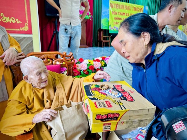 Dẫu đã 98 tuổi, NT. Chiêu Liên với tấm lòng từ bi vô lượng, không quản tuổi cao sức yếu, vẫn phát tâm hướng dẫn Ni chúng khởi hành chuyến xe xuyên đêm, mang theo những phần quà đượm nghĩa tình của chư Tôn đức Ni và các Phật tử, mạnh thường quân trong và ngoài nước, gửi đến đồng bào vùng lũ.