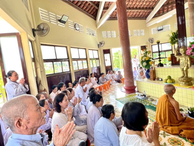 Trước giác linh đài của Đức Trưởng lão Hòa thượng, chư Phật tử đạo tràng đã dâng lời cảm niệm đầy xúc động, bày tỏ lòng tri ân sâu sắc đến bậc Thầy kiến lập Tịnh xá Ngọc Hương, người đã dẫn dắt bao thế hệ Phật tử bước đi trên con đường giải thoát, nương theo ánh sáng Chánh pháp của Đức Phật.