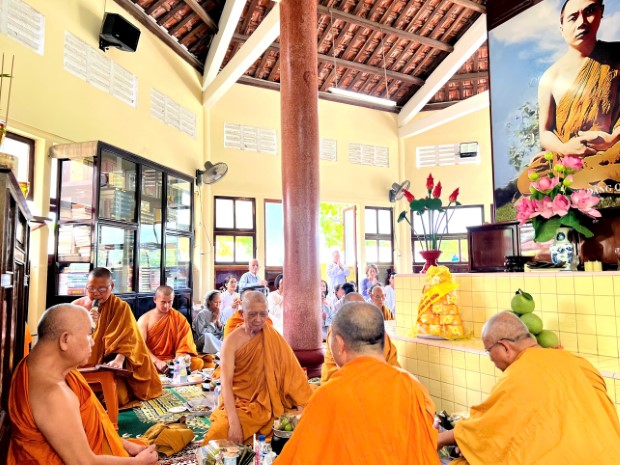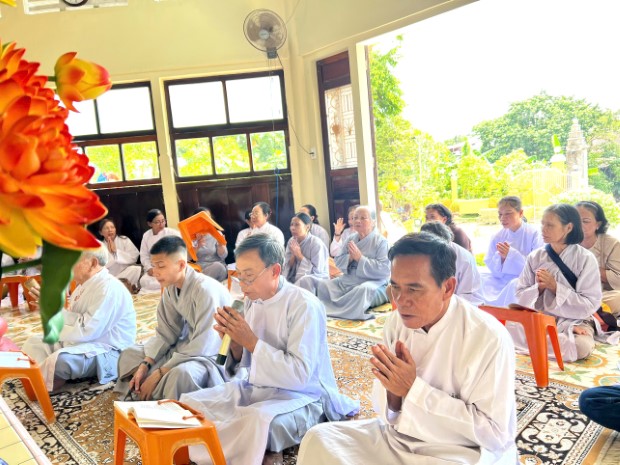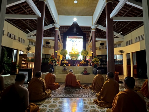 Trước đó, vào lúc 04h00 sáng cùng ngày, chư Tăng giáo đoàn đã vân tập chánh điện thực hành thiền toạ cũng như tụng thời kinh cầu nguyện để tưởng niệm công đức và đạo hạnh của Ngài.