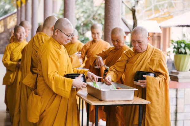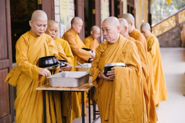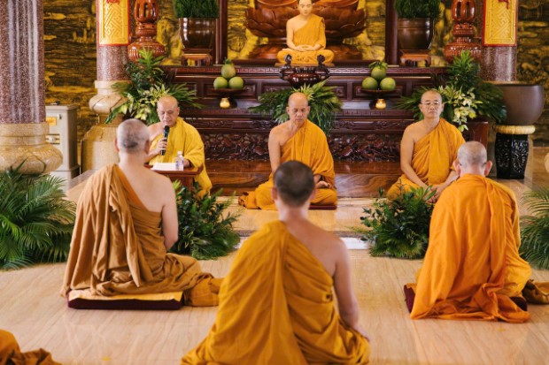 Thượng tọa giảng giải, đối với tứ sự (ăn-mặc-ở-bệnh), nếu chỉ vì bữa cơm không hợp khẩu vị mà sinh phiền não, thì người xuất gia đang tầm cầu cái ăn, chứ chưa hề tầm cầu giải thoát. Bên cạnh đó, trong cái mặc - cái ở,nếu người xuất gia dính mắc vào màu áo, kiểu dáng, phòng ở, tiện nghi… chỉ làm yếu dần tinh thần kham nhẫn.