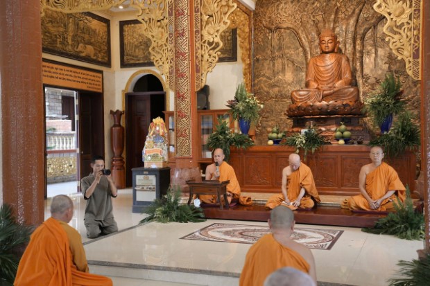 Trong khuôn khổ khóa tu, TT. Giác Nhuận – Ủy viên Ban Trị sự GHPGVN TP.HCM, Trị sự phó GĐ.VI PGKS, đã dành nhiều lời chia sẻ trực diện và thẳng thắn, giúp chư hành giả tự quán chiếu, nhìn lại chính mình để tránh khỏi những lệch lạc âm thầm nhưng nguy hiểm trong đời sống phạm hạnh.