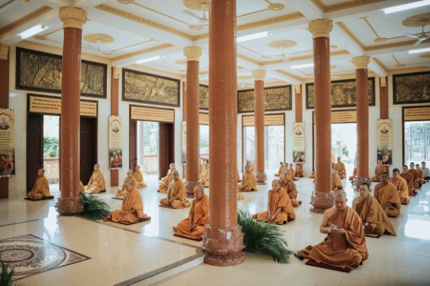 Bước vào ngày thứ hai của khóa “Sống chung tu học” lần thứ 28 do GĐ.VI PGKS tổ chức, sáng 4/10/2025 (13/8/Ất Tỵ), các hành giả Tăng Ni trực thuộc GĐ.VI PGKS đã cung đón sự quang lâm của chư Tôn đức lãnh đạo Giáo đoàn: HT. Giác Điệp và TT. Giác Nhuận, đến thăm và dành lời sách tấn tới hội chúng.