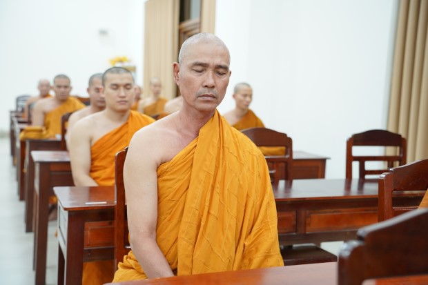 Trước khi bước vào nội dung chính, Hòa thượng hướng dẫn toàn thể đại chúng ngồi thiền trong 10 phút, giúp thân tâm an tĩnh, tạo nền tảng cho một buổi học pháp trọn vẹn và lợi lạc.