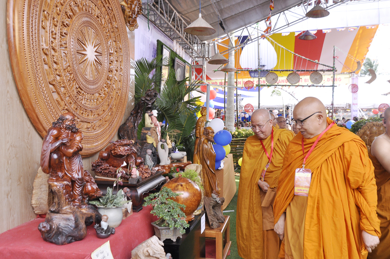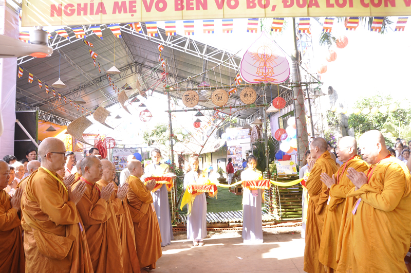 Ngay sau đạo từ của HT. Giác Trí, Ban Tổ chức đã cung thỉnh quý Hòa thượng, Thượng tọa, chư Tôn đức cắt băng khai mạc triển lãm những tác phẩm nghệ thuật đang được bố trí tại phòng triển lãm.