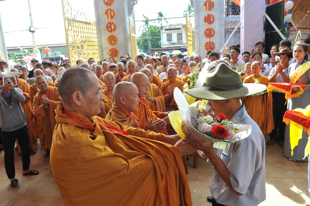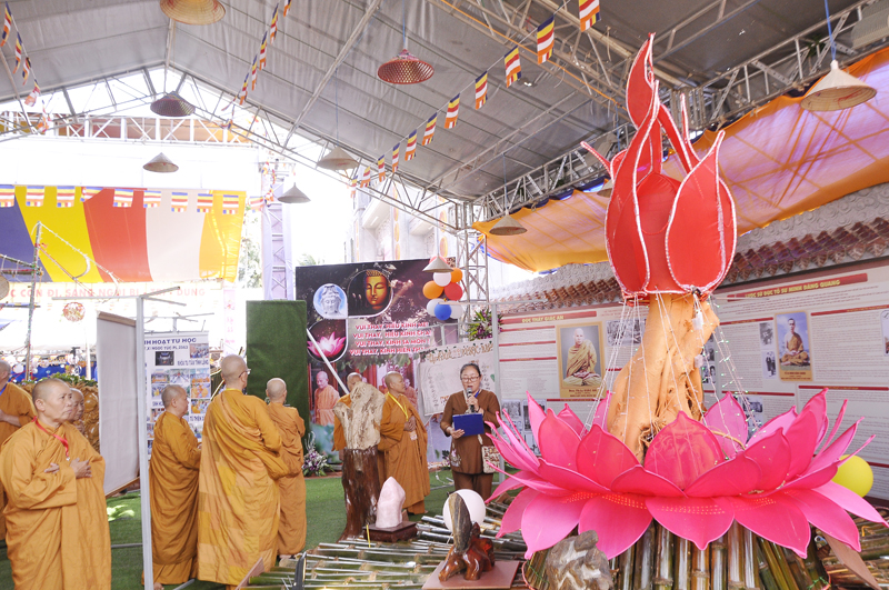 Sau khi trao hoa, thay mặt chư Tôn đức chứng minh, HT. Giác Trí đã có những đạo từ đến Ban Tổ chức cũng như quý Phật tử về tham dự. Hòa thượng đã chúc mừng và tán thán công đức đến Ban Tổ chức và Phật tử địa phương đã tạo không gian triển lãm đầy thi vị, khơi dậy tâm thức trí tuệ con người tìm về cội nguồn.
